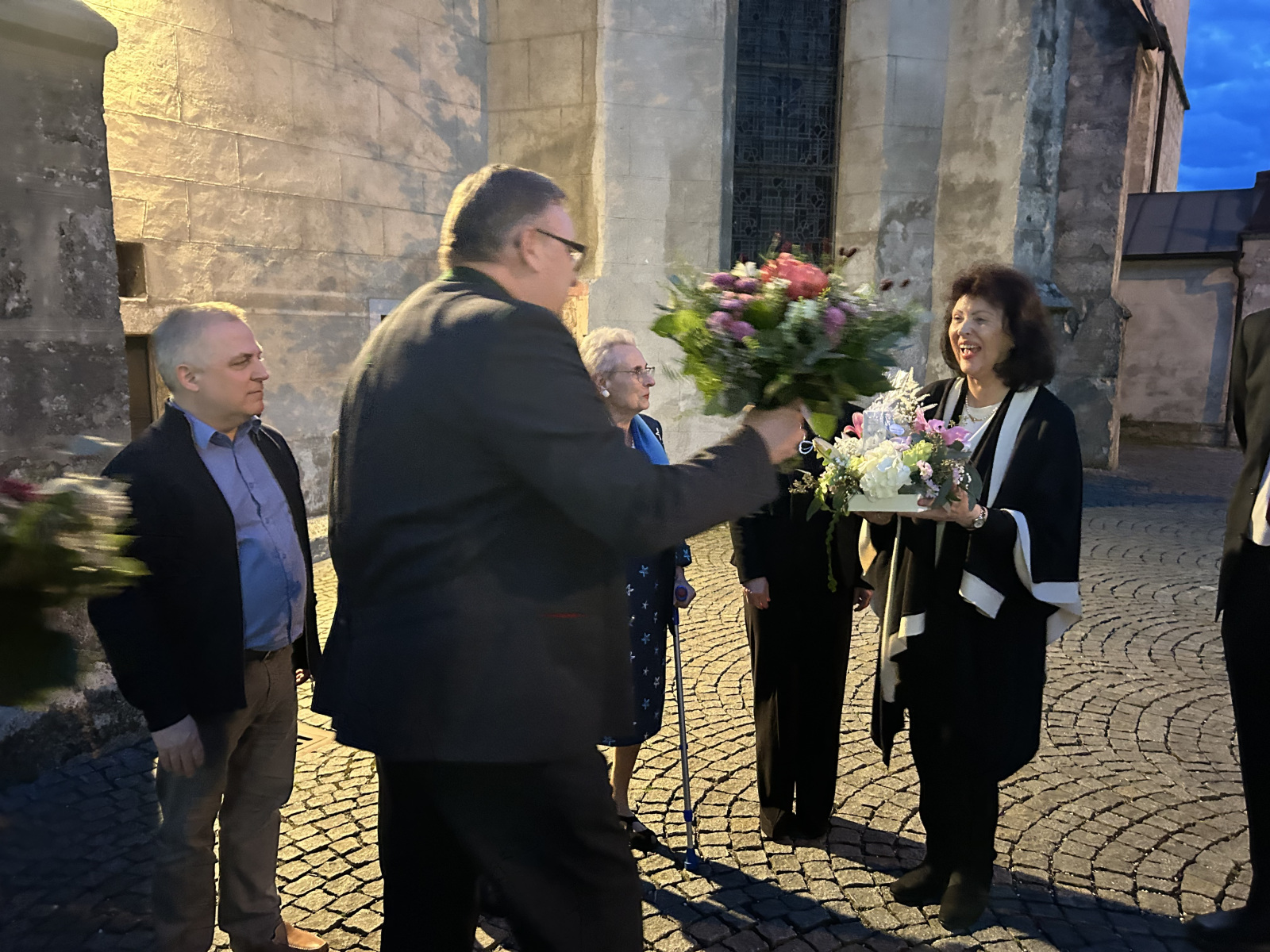 Mit Franz Schuberts Messe Nr. 2 in G-Dur erfüllten die unglaublichen Stimmen des Chores die Kirche und schufen eine Atmosphäre der Besinnung an unsere verstorbenen Mitglieder. Besonders hervorzuheben ist die herausragende Leistung aller Solist:innen – Brigitte Guttenbrunner (Sopran), Michael Nowak (Tenor) und Andreas Hirsch (Bass) – sowie das Orgelspiel von Klaus Oberlehner. Dirigentin Ingrid Vadehra führte die Musiker:innen mit viel Feingefühl durch das Werk.